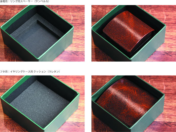 リング用の小さいケースを入れる際は、身箱にサンペルカのスペーサーを封入。